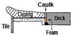 Caulking the expansion joint around the pool (between the pool coping and pool deck) is important for two reasons. First, caulking keeps out water, which can freeze and expand in the joint during winter. The 10% expansion is enough to damage the coping, beam and eventually the tile. Ice in the expansion joint can be very destructive over time. The second reason is to prevent the expansion joint from filling up with sand and dirt. Over many years, material building up in the expansion joint will absorb the movement of the pool and transfer it to the pool deck, or vice versa. When the joint is full of debris, there is no air space left for expansion of the pool or pool deck, and when they expand, they bump into each other, with the horizontal pool deck usually winning out over the weaker, vertical pool wall.