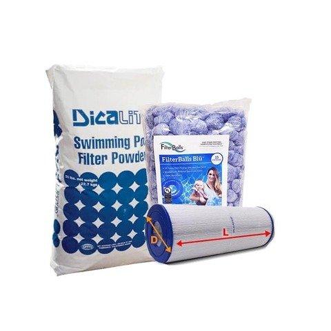 Pool Filter Media is the stuff inside of the filter tank, the material that traps the dirt. Over time, it loses the ability to catch small particles and will need replacement. We carry a huge inventory of pool filter media to fit any pool filter. Sand Filters are filled 2/3 full of pool filter sand, which lasts 5-7 years. Filter sand alternatives include ZeoSand and FilterBalls. Cartridge pool filters use replacement filter cartridges, which should be replaced every few years, or after 12-15 cleanings. D.E. pool filters use fabric coated DE Grids, which last about 10 years, and are used with a coating of DE powder. All types of Filter Media can be renewed with a deep cleansing from a pool filter cleaner chemical to remove oils and minerals. Choose the pool filter cleaner made for your filter type, then soak and rinse clean to improve flow and increase usable filter surface area. Treatment is recommended annually, at the end of each season, or more often for heavily used pools with undersized pool filters, or for filter media in poor condition.