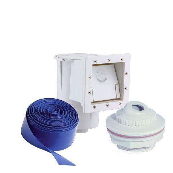 White goods is a term used to refer to those pool parts made from white plastic, or ABS to be specific. In our Wall Skimmers & Parts department, you will find complete replacement wall skimmers by Hayward for all pool types, and complete wall return fittings used on vinyl liner pools. Skim Vac adapters that allow you to vacuum into the skimmer basket, instead of the pump basket. We also carry replacement skimmer and return faceplates and gaskets, for use when replacing pool liners. Directional eyeball fittings are also included in white goods, even when they are grey or black in color. Skimmer baskets, weirs and skimmer lids are also considered white goods, as well as Hayward’s ubiquitous white plastic 1.5” threaded plug, and 1.5” hose adapters. Another group of white goods includes plumbing fittings, adapters, unions, and valves used to connect pumps, filters and heaters together. And although it’s often blue and not white, you’ll find backwash hose (aka discharge hose) with clamps in this area of the website.